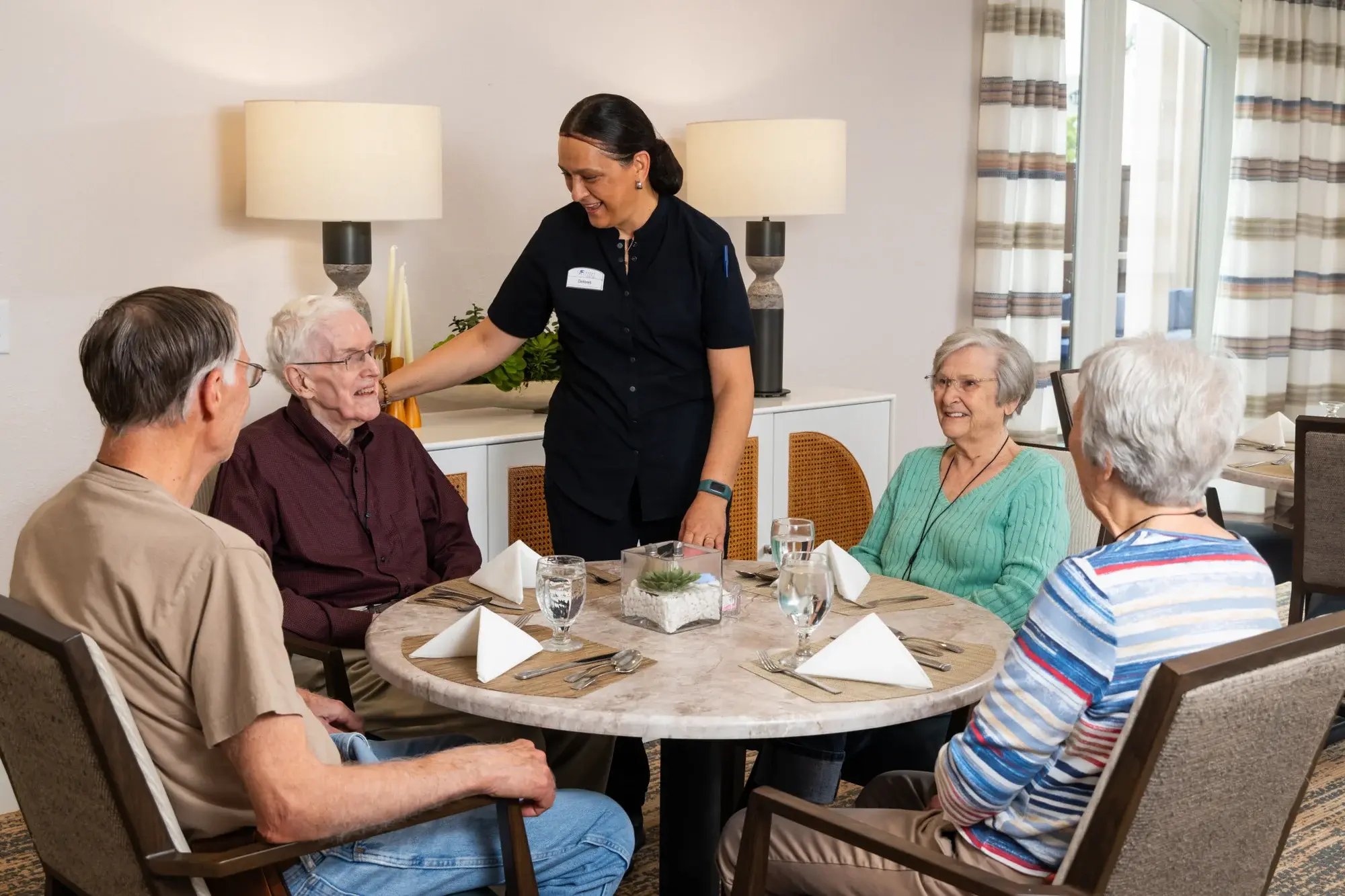 "Toured numerous facilities for our mom and this one really stood out. Recently remodeled. Small dining room felt more like a restaurant than cafeteria and we liked that it had multiple daily food options on top of the "always available" a la carte items. This was the only one we found that would add taking her dogs out as part of her care plan plus they offered transportation to more than just Dr appointments if you gave 24 hour notice."